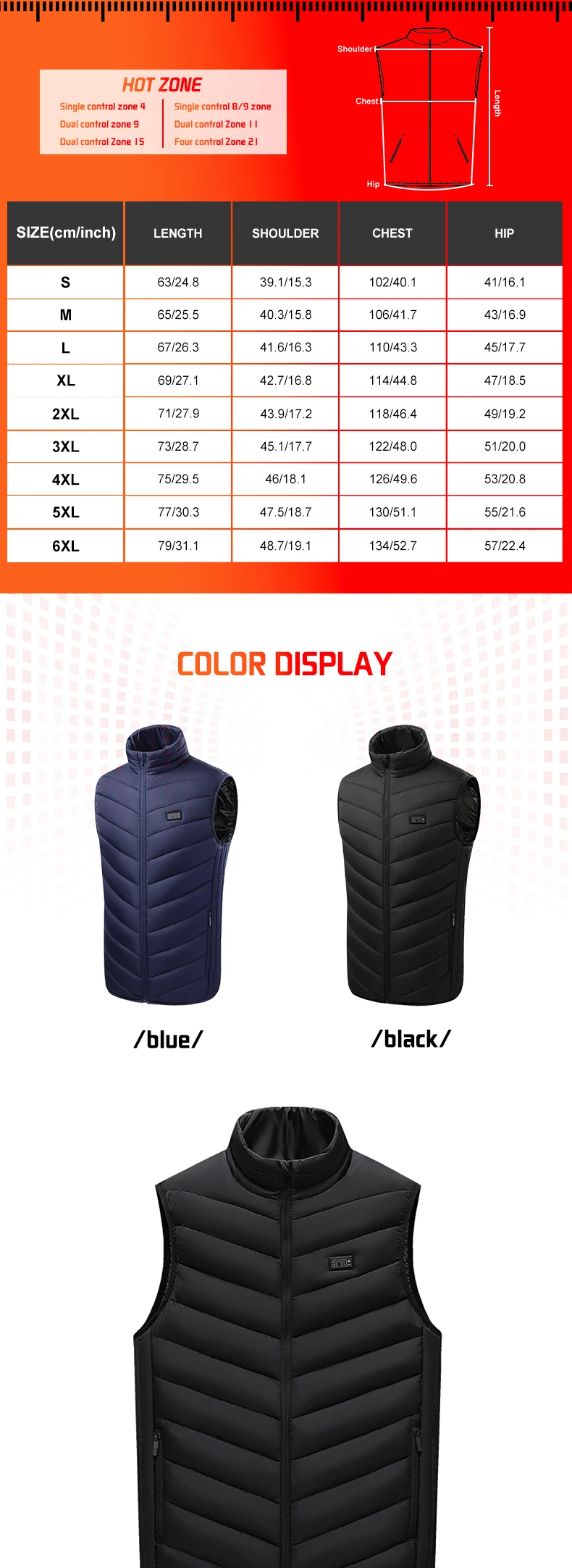 TODWARM Heated Vest 26 Areas Men Jacket Heated Winter Womens Heater Jacket Thermal Vest Body Warmer Outdoor sports Coat 6XL